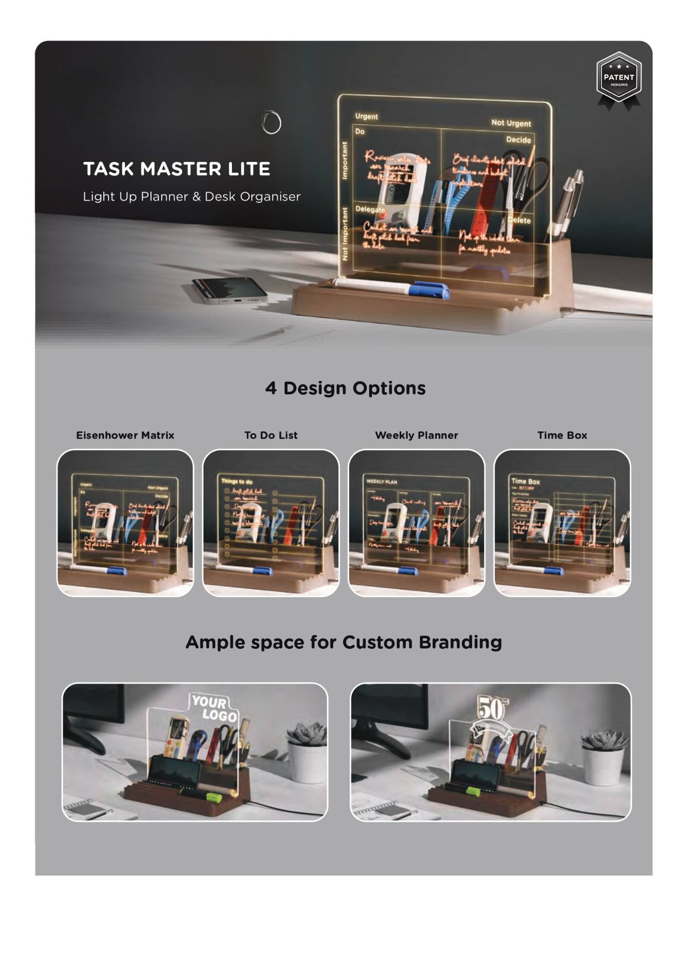 Discover the transformative power of Taskplanner Lite, a sleek and functional desk organizer designed to elevate your workspace. Its innovative flat board design, coupled with an illuminating clear acrylic sheet, creates a visually appealing and productive environment.