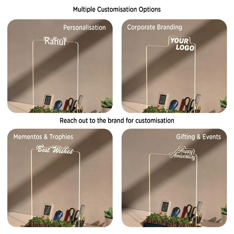 The Taskplanner Lite’s multi-compartment storage ensures your pens, stationery, and other essentials are always within reach, while the self-watering plant pot adds a touch of nature to your desk. The special glow markers, designed to work seamlessly with the acrylic sheet, provide a warm and diffused light, perfect for low-light conditions.